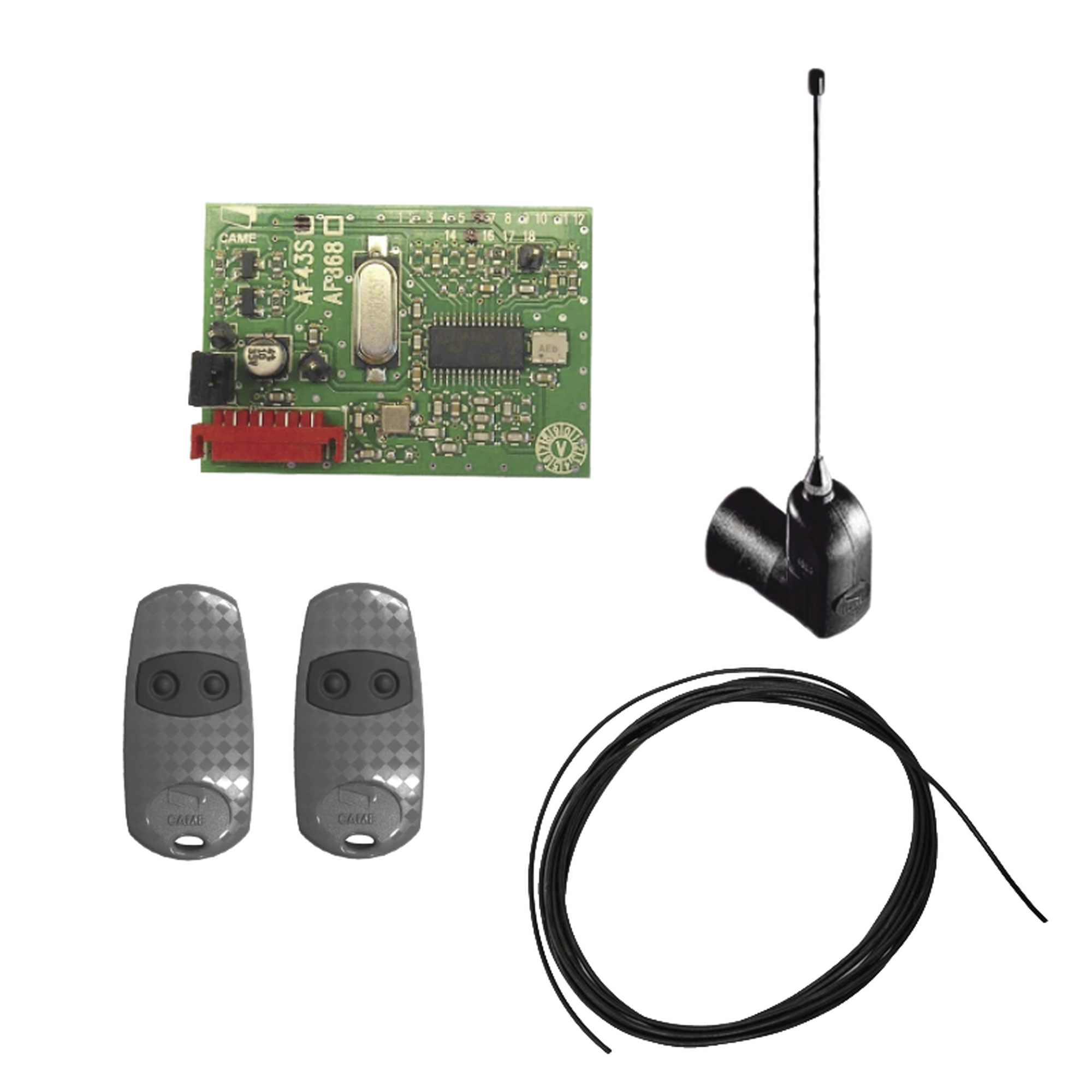 El kit incluye el módulo y accesorios necesarios para añadir la funcionalidad de control remoto a las barreras y motores para puertas corredizas o abatibles CAME.