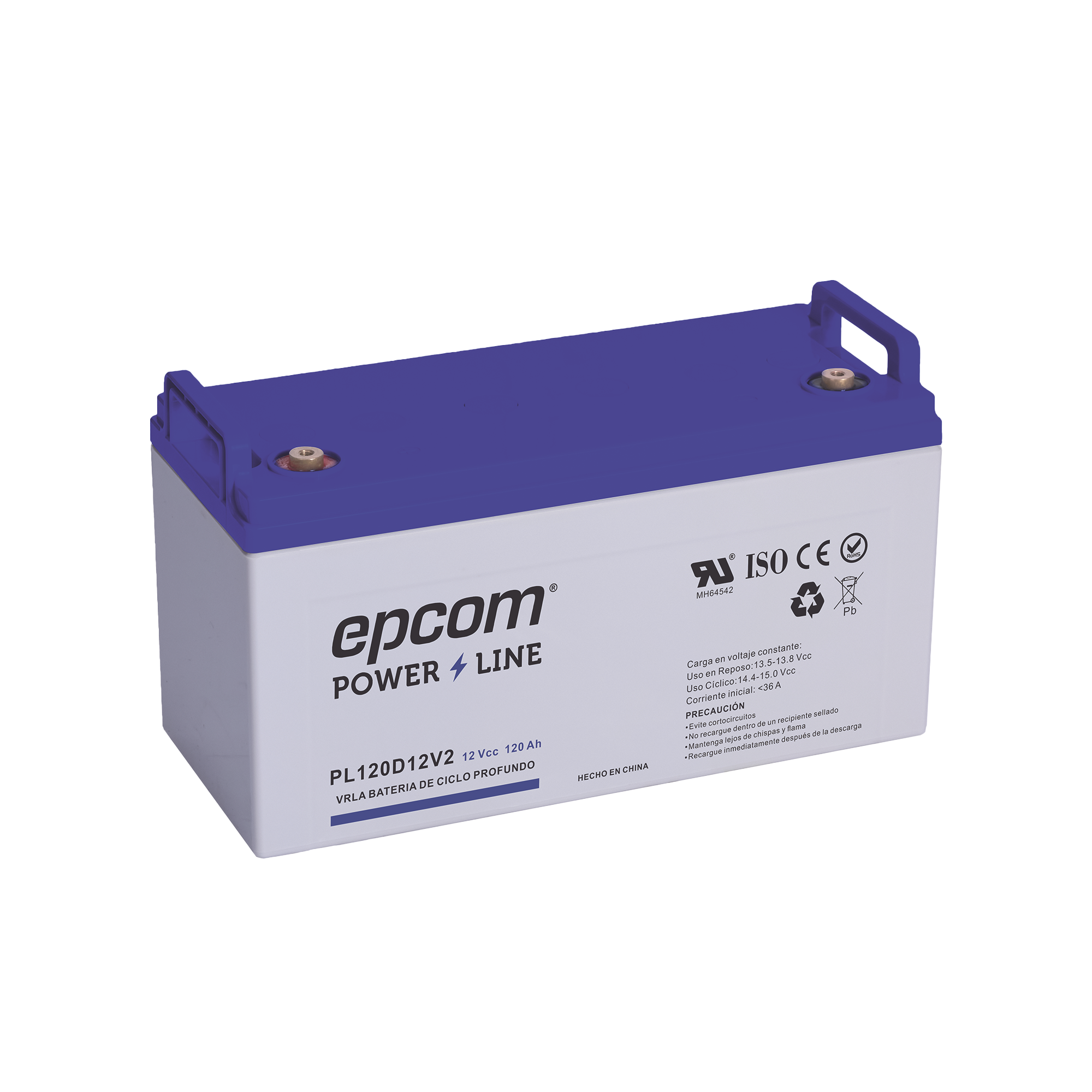 La serie de baterías EPCOM POWER LINE, estan diseñadas con tecnología AGM-VRLA ( Fibra de vidrio absorbente, con válvulas de regulación), placas de alto rendimiento y electrólito para proporcionar una salida de energía adicional. Las baterías de la serie EPCOM POWER LINE son baterías de respaldo para equipos electrónicos, con una vida útil de diseño flotante de 5 años a 25°C, están aprobadas por UL ( MH62092 ).