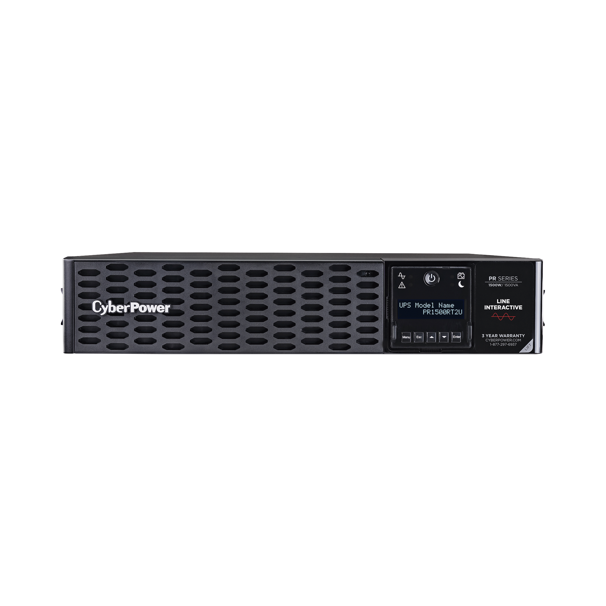 CyberPower PR1500RT2U con diseño de montaje en rack, garantiza protección de respaldo de energía para sistemas de teatro en casa, dispositivos multimedia, equipos de TI, computadoras, estaciones de trabajo, NAS / dispositivos de almacenamiento, dispositivos de telecomunicaciones, dispositivos de red y sistemas de video vigilancia. El UPS adopta la topología de línea interactiva con regulación automática de voltaje (AVR) y ofrece salida de onda senoidal estabilizada para garantizar una alta calidad de potencia.