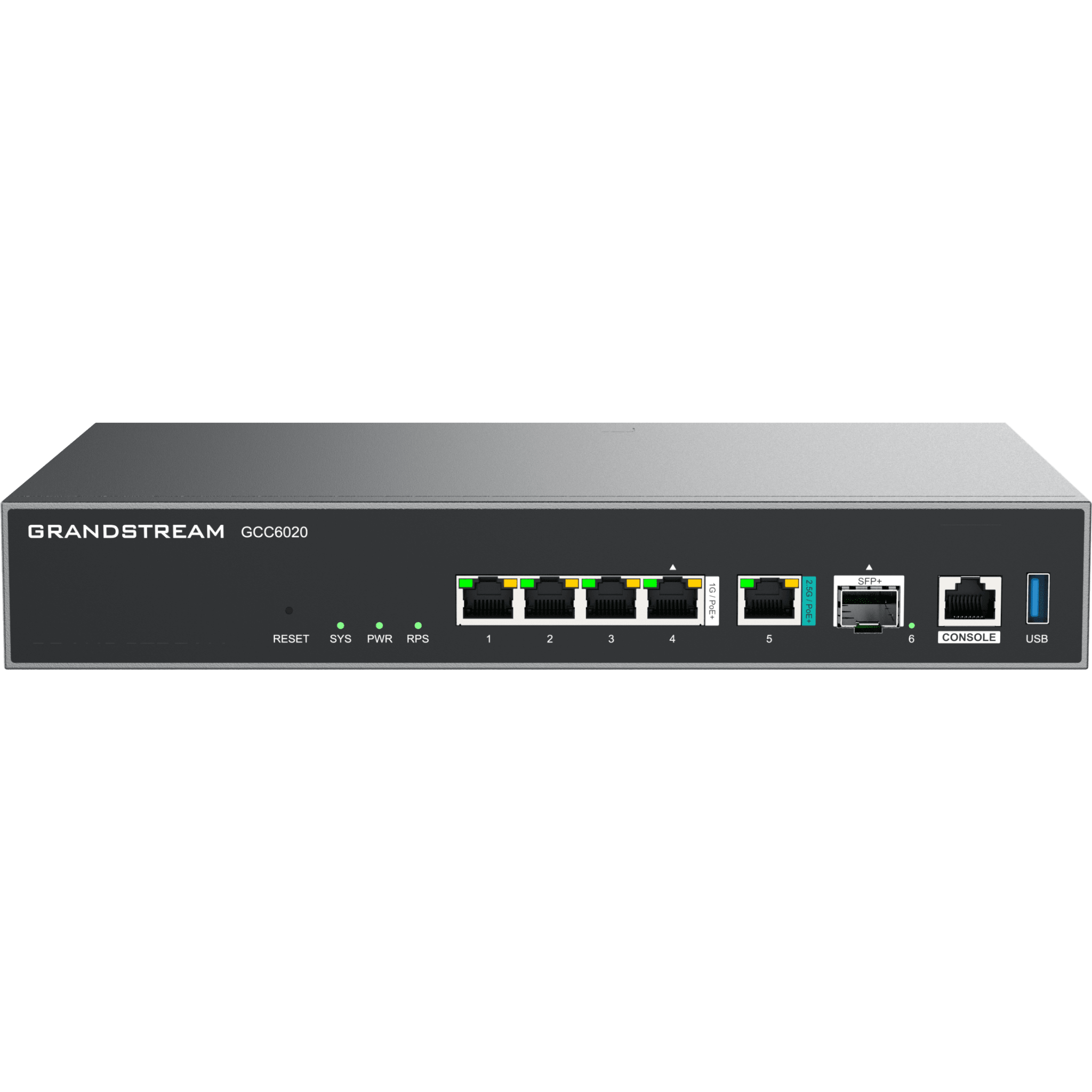 Dispositivo de Convergencia de Redes GCC6020 / Router VPN / Firewall de Próxima Generación / IP PBX / Switch de Red / 4 Puertos Gigabit Ethernet / 1 Puerto SFP+ 10 Gigabit / 1 Puerto 2.5 Gigabit / Administración en la Nube GDMS / Mont