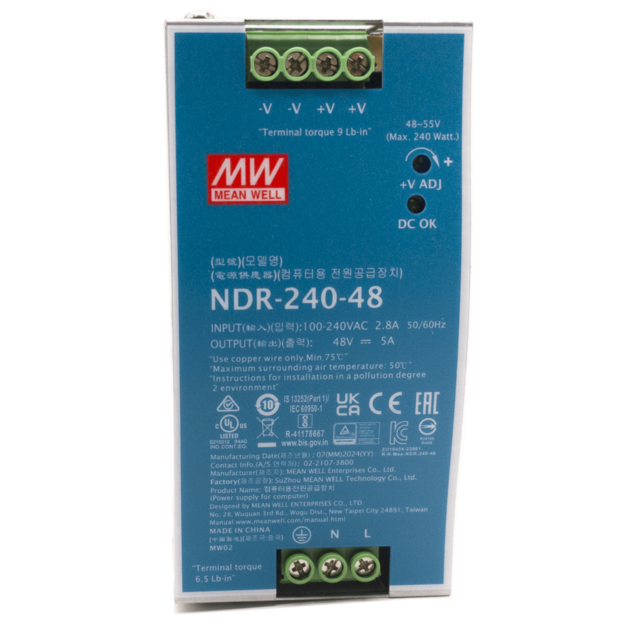 Fuente de Poder Industrial / 240 Watts / Salida 48 VCD / 5 Amp / Montaje Riel Din