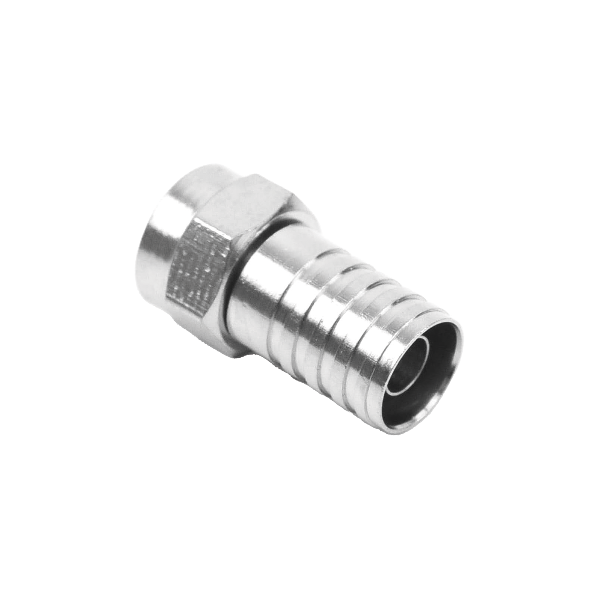Conector F Macho, Plegable de Doble Blindaje para cable RG-59, Cuerpo de Bronce Niquelado.