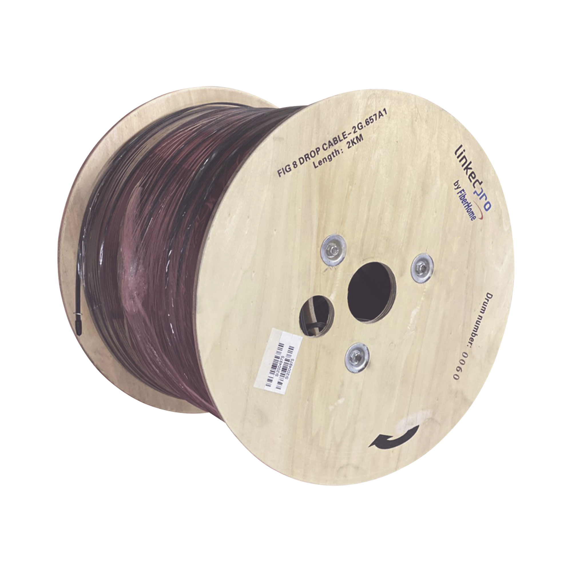 Carrete de 2 km de Fibra Óptica Aérea Mini Figura 8 G.657A1 tipo Drop, Monomodo de 2 Hilos (bifibra), Color Negro