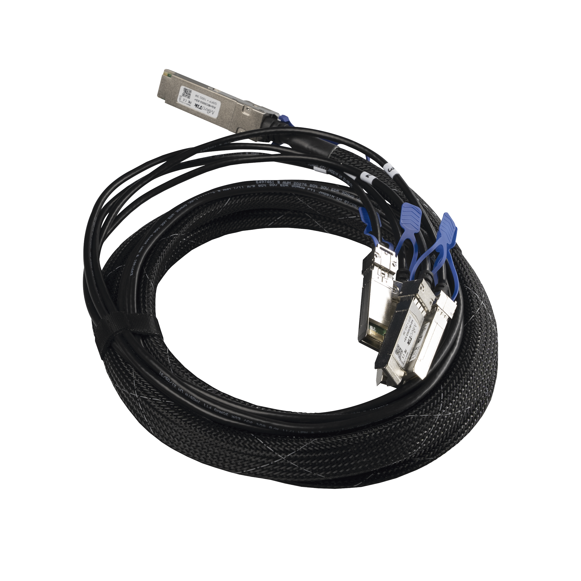 XQ+BC0003-XS+Un cable de salida QSFP28 a 4x SFP28. Permite conectar varios dispositivos de 25 Gigabit a sus dispositivos CCR2216/CRS504.