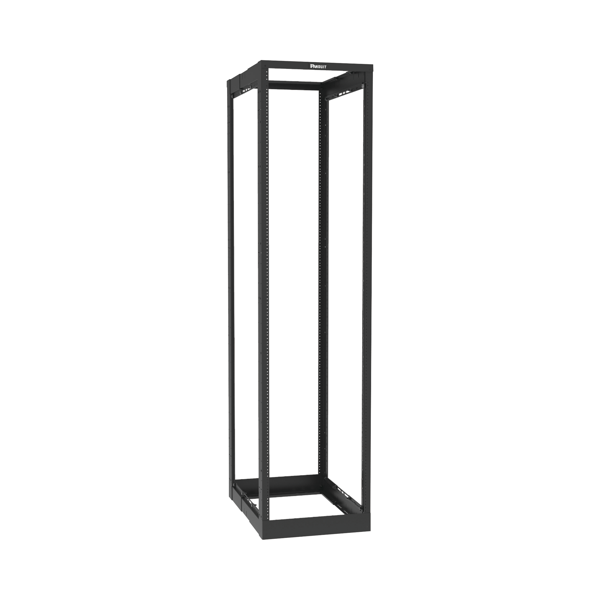 Rack de Cuatro Postes Estándar de 19″, Rieles Roscados #12-24, Profundidad Ajustable de 23 a 42 in, 45 Unidades de Rack, Color Negro