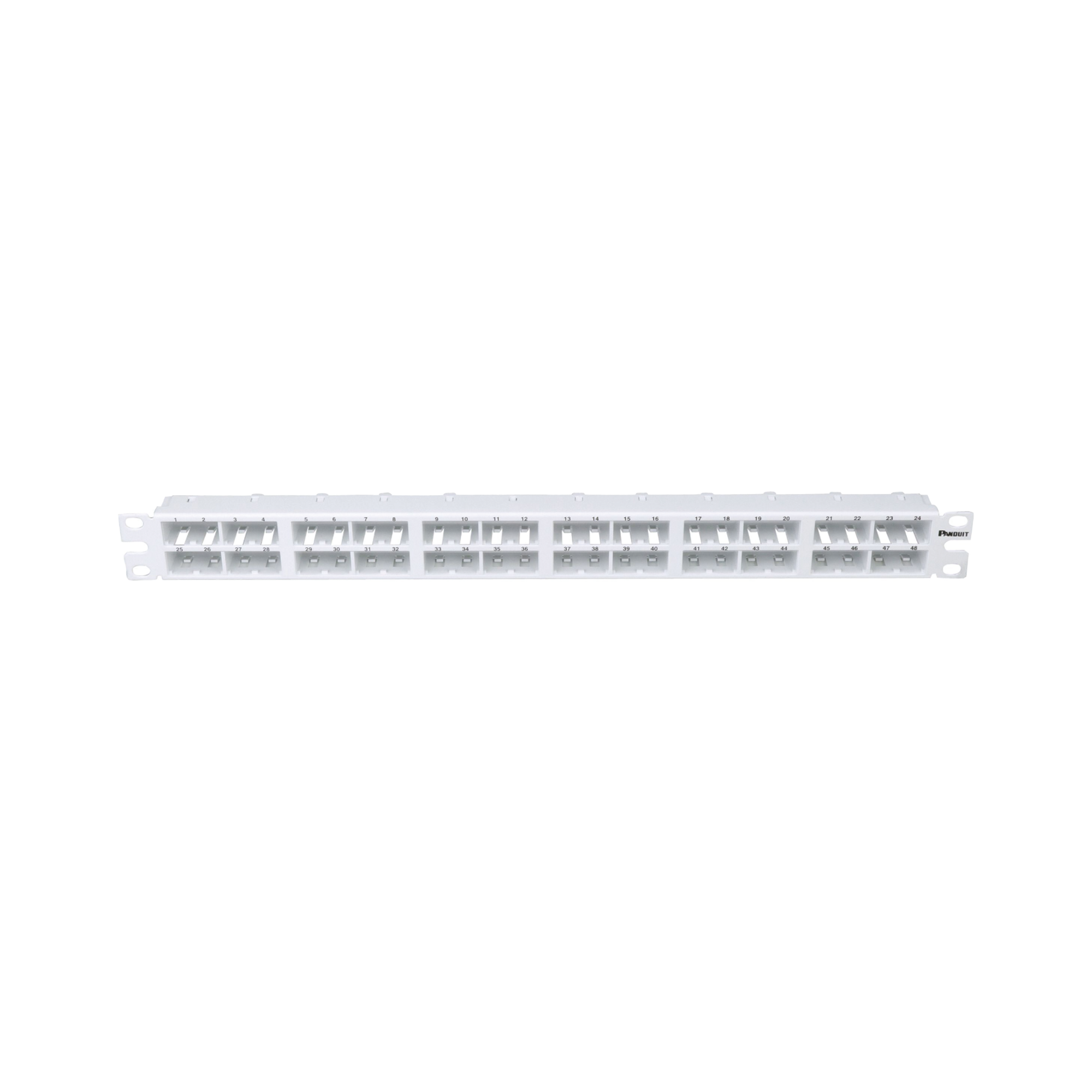 Panel de Parcheo Modular Mini-Com (Sin Conectores), Plano, Sin Blindaje, Alta Densidad, de 48 puertos, Color Blanco, 1 UR