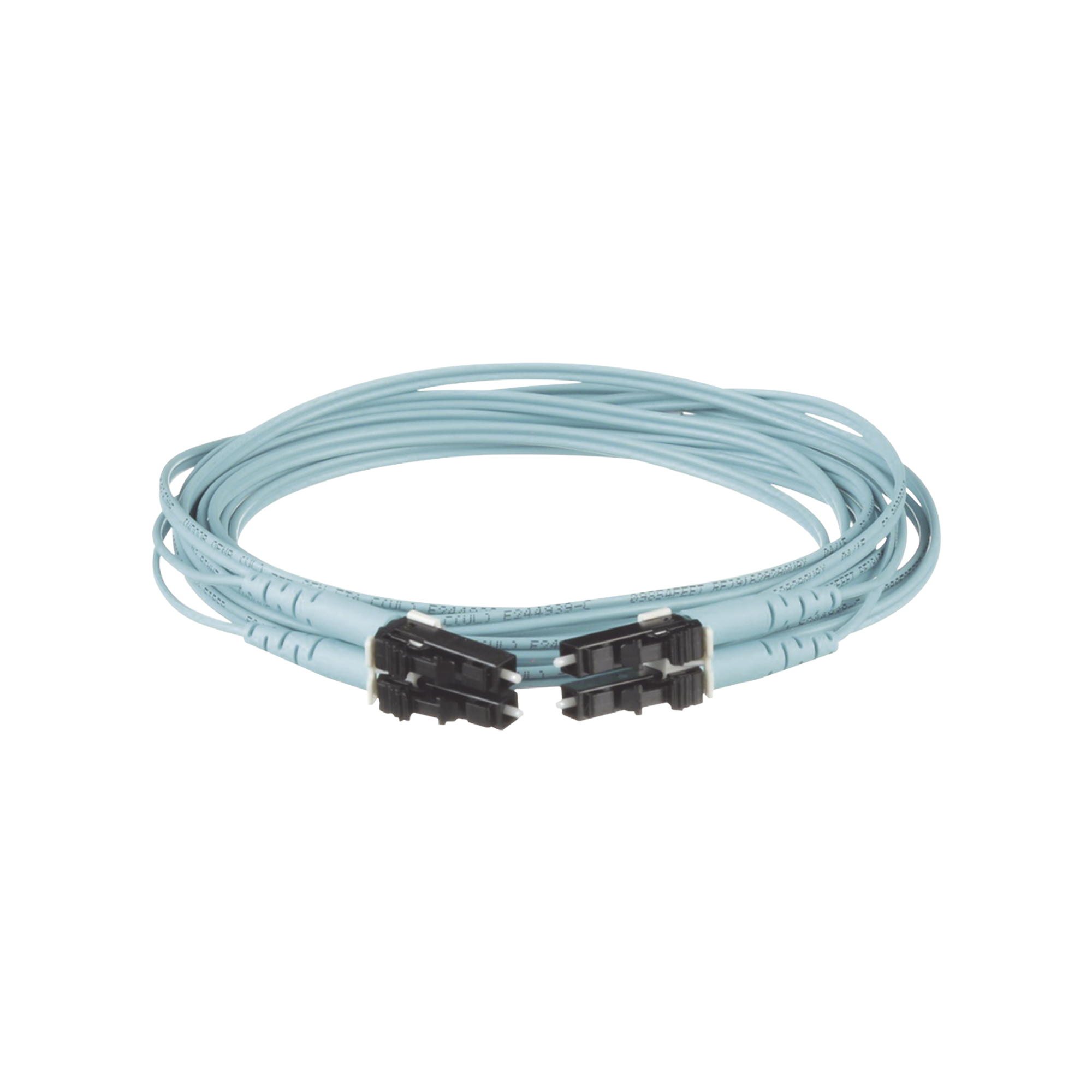 Jumper de Fibra Optica Multimodo 50/125 OM3, LC-LC Duplex, OFNR (Riser), Color Aqua, 25 Metros