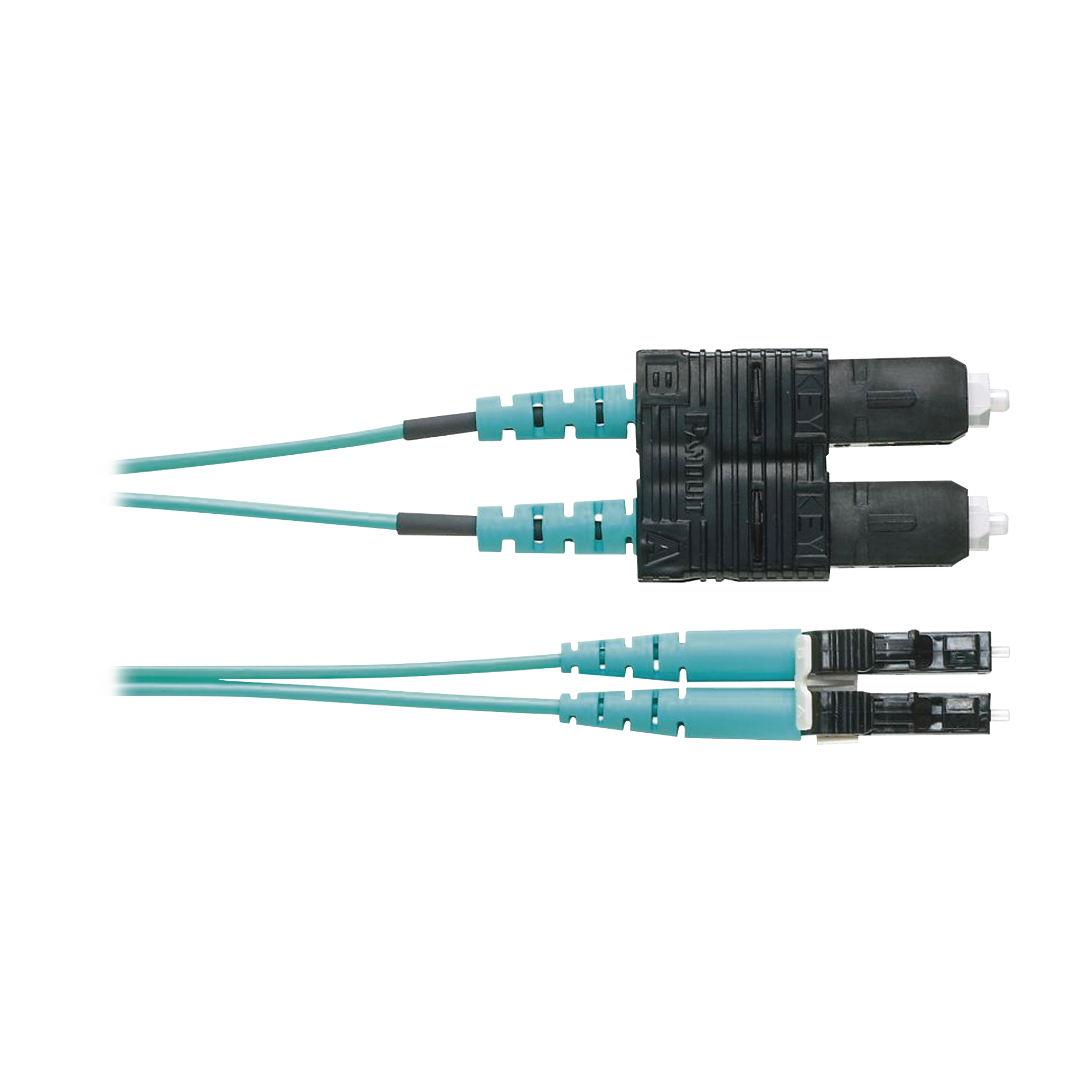 Jumper de Fibra Optica Multimodo 50/125 OM4, LC-SC Duplex, OFNR (Riser), Color Aqua, 1 Metro