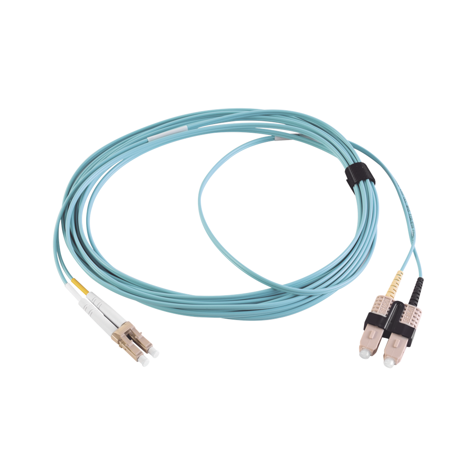 Jumper de Fibra Óptica Multimodo 50/125 XGLO OM3, LC-SC Duplex, OFNR, Color Aqua, 5 Metros