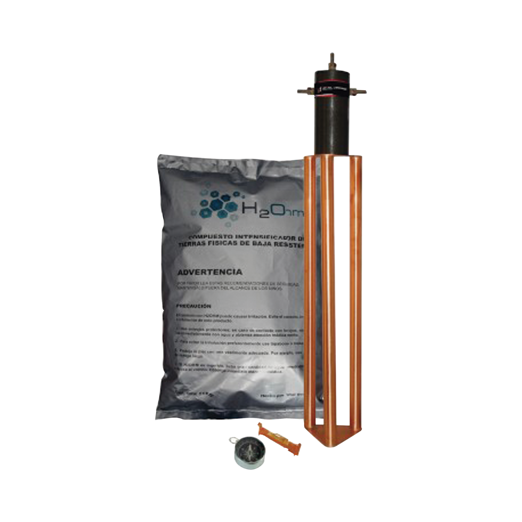- Electrodo: El Electrodo de puesta a tierra marca TOTAL GROUND modelo TG-25AB. Elaborado de cobre electrolítico altamente conductivo, tratado especialmente para retardar los efectos de la corrosión.