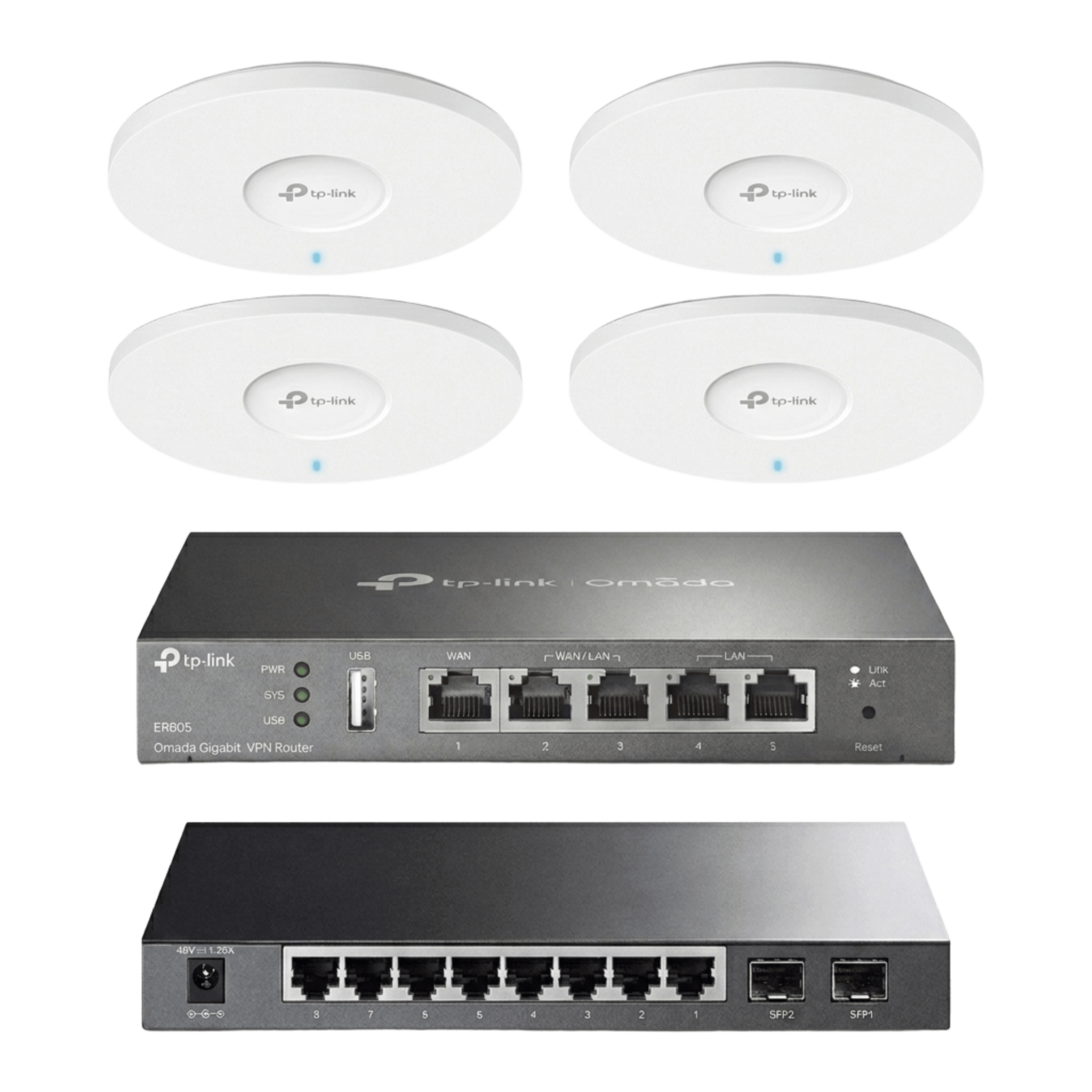 Kit de Iniciación en redes OMADA / 1 Router / 1 Switch TL-SG2210P / 4 Punto de Acceso EAP613