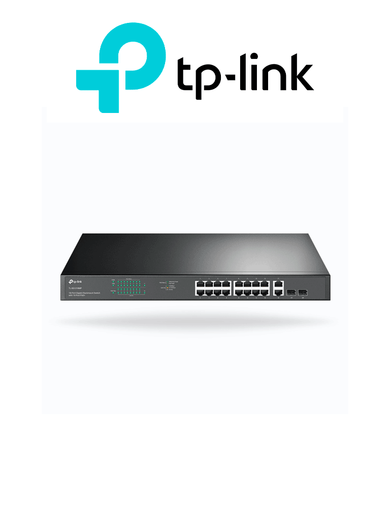 TP-LINK TL-SG1218MP – Switch no administrable de 16 puertos 10/100/1000Mbps y PoE af/at, 2 puertos SFP hasta 250W.