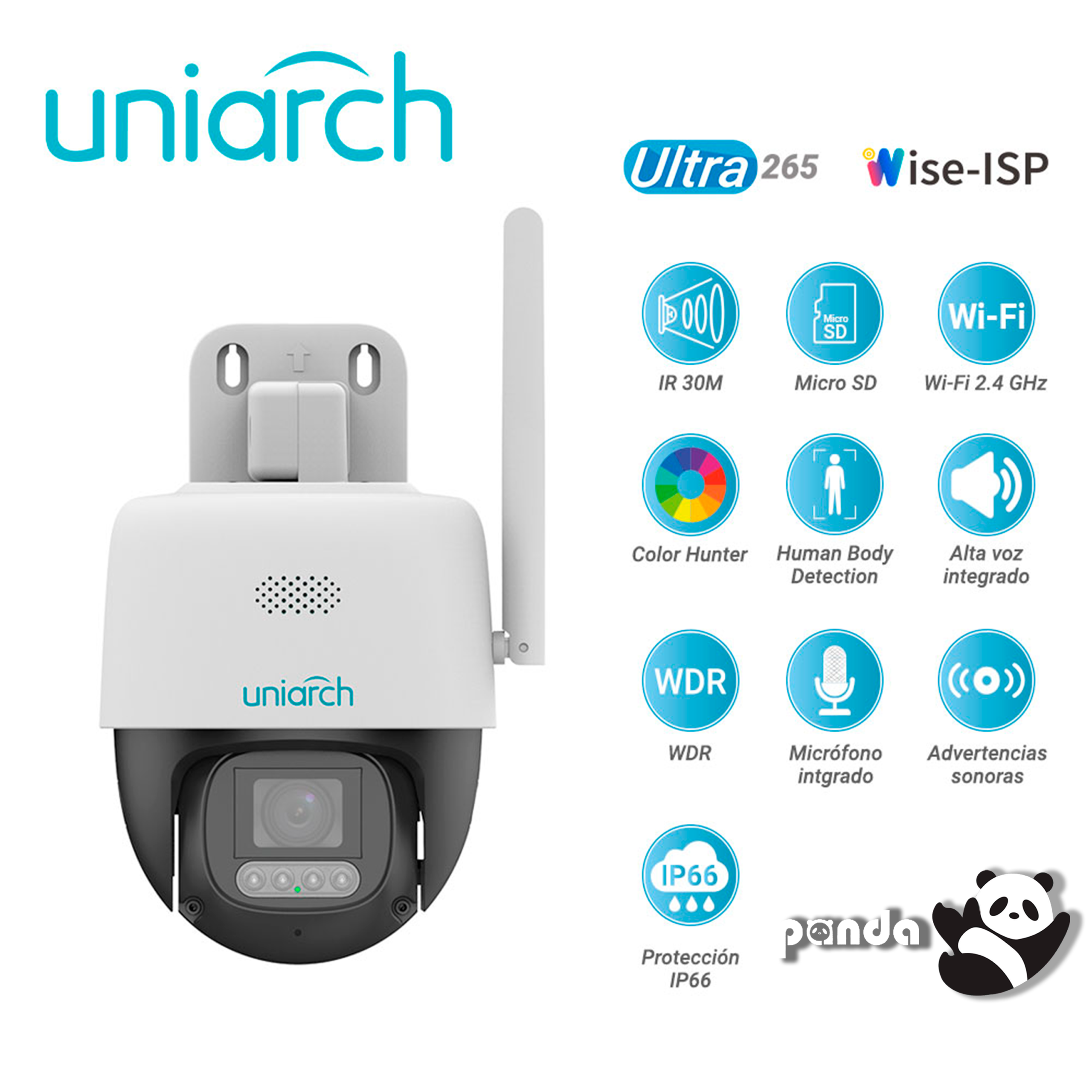 Presentamos la Uho-P3C-M5F4 una cámara IP PT WiFi de la serie Panda de Uniarch diseñada para ofrecer soluciones de videovigilancia avanzadas con una excelente relación calidad-precio. Esta cámara combina tecnología de vanguardia con un diseño compacto y funcional ideal para hogares y pequeñas empresas que buscan seguridad eficiente y accesible. Además la Uho-P3C-M5F4 incorpora capacidades de almacenamiento local conectividad WiFi para instalaciones sin complicaciones y resistencia al clima con certificación IP66 garantizando un rendimiento confiable incluso en condiciones adversas. Su diseño inteligente y fácil instalación hacen que esta cámara sea una solución ideal para quienes buscan integrar un sistema de seguridad efectivo y moderno en su día a día.
