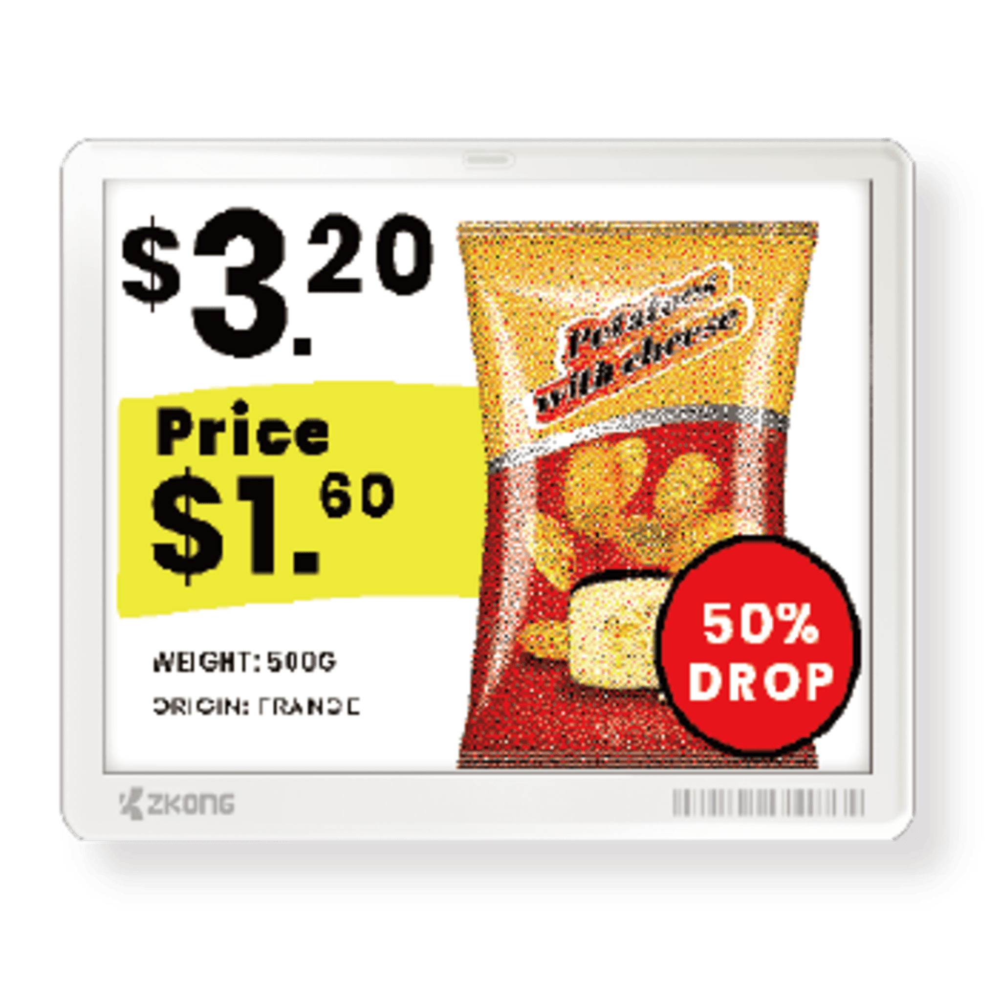 Etiqueta Electrónica ESL 5.8 EPD Matriz de Puntos / Resolución 648×480 Pixels / 4 Colores (Negro Blanco Rojo Amarillo) / BLE 5.1 con Encriptación AES-128 / Batería 5 Años / NFC Opcional / Cloud Management / Certifi